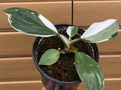 The Philodendron White Knight prefers bright, indirect light and moderate to high humidity. Allow top two inches of soil to dry between waterings.