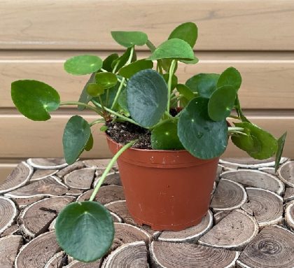 Commonly known as Chinese money plant, pancake plant, UFO plant or Friendship Plant this pilea is the new and trendy plant to have. Provide bright indirect light and turn the plant often to maintain its round shape as the leaves like to follow the light. Water once a week. Keep moist but not soggy. The plant quickly produces babies around the mother plant which makes it very easy to propagate and share with friends.