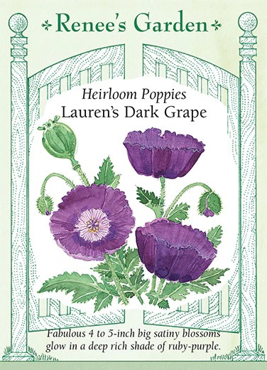 Absolutely stunning 4 to 5 inch chalice-shaped flowers with satiny petals that glow in the most delicious shade of deep ruby-purple. These outstanding, heirloom poppies grow 3 to 5 feet tall, depending on how rich your soil is. With their big, lettuce-like, blue-gray leaves and port wine colored flowers, Lauren’s Grape is a highlight of the spring garden. These beautiful flowers easily self sow to shine again every season.