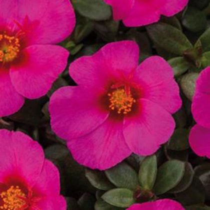 Vibrant flowers atop ground-hugging, thick succulent foliage. Plant in large groups to form a dense mat of spectacular color or add to combination pots. Will thrive in hot, well-drained locations. Excellent ground cover.