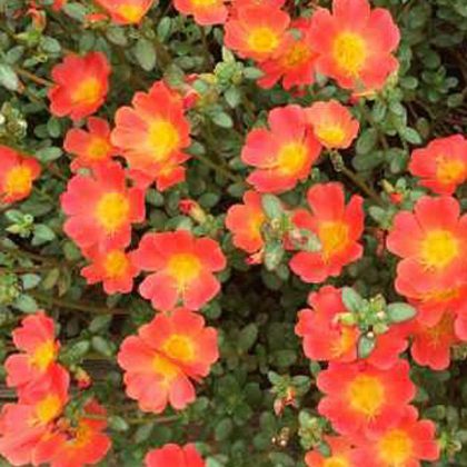 Vibrant flowers atop ground-hugging, thick succulent foliage. Plant in large groups to form a dense mat of spectacular color or add to combination pots. Will thrive in hot, well-drained locations. Excellent ground cover.