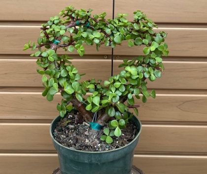 This heart-shaped Portulacaria love bright, indirect light. It is a succulent, so make sure the soil is well-draining and only water once the soil is dry.