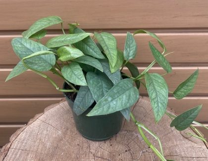 The Epipremnum pinnatum, or Pothos 'Cebu Blue,' does well in medium light. Allow top 1-2 inches of soil dry between waterings.