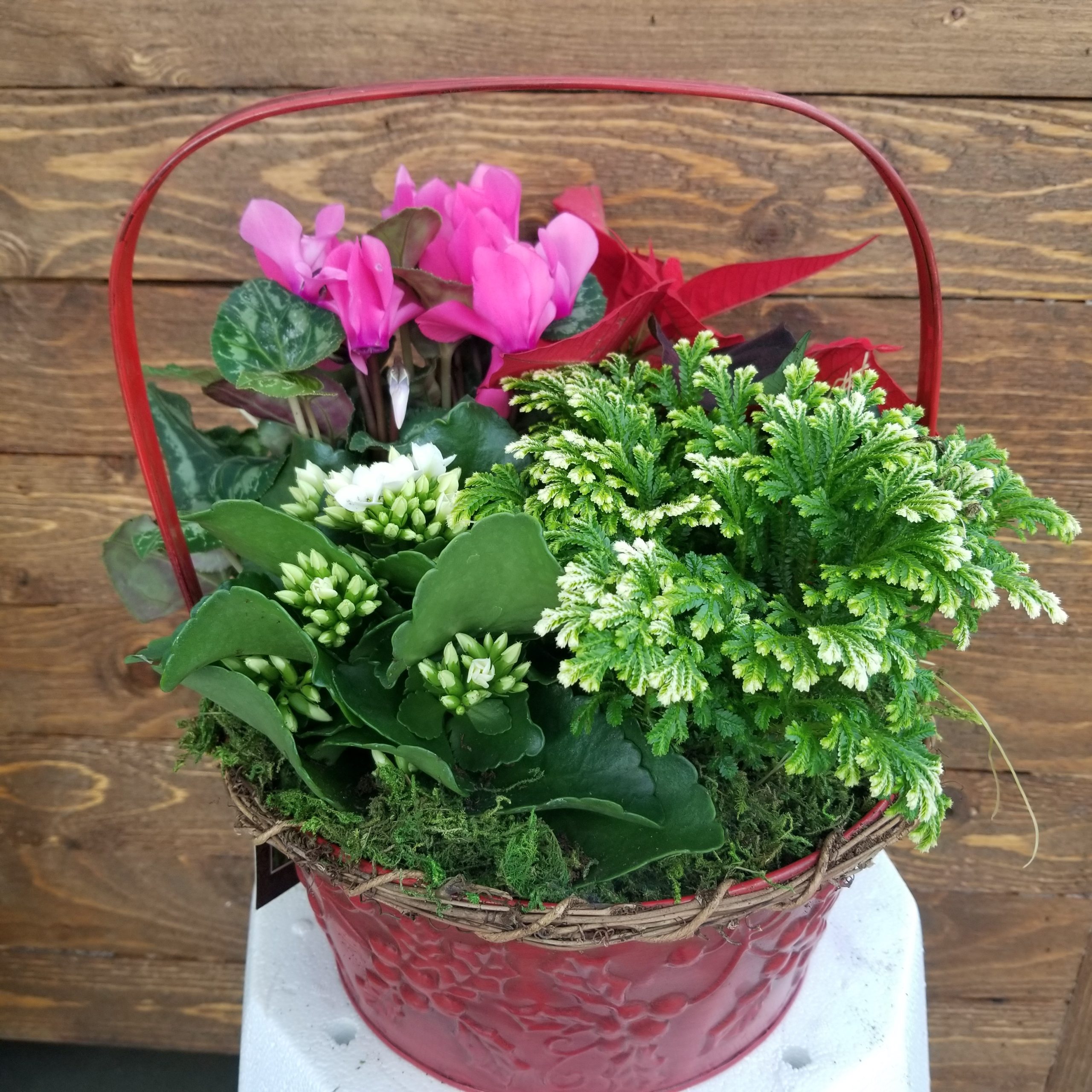 Place in bright indirect light. Water weekly or when the top 1″ of the soil is dry. A great indoor holiday decor or a hostess gift.