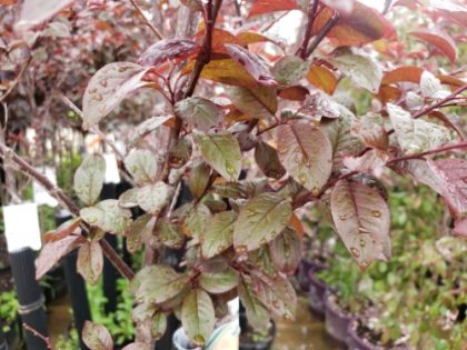 With fragrant flowers and bronze foliage that matures to red-purple, this specimen is sure to add an accent to your cottage garden. Excellent for attracting birds and producing showy, edible fruit!