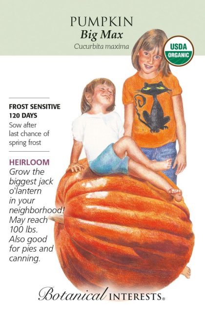 Big Max' is the choice of giant pumpkin growers. Unlike some large pumpkins that are just blobs, 'Big Max' is round and has smooth, light-orange skin and is perfect for Halloween carving or other holiday decorations. To achieve maximum size, grow one pumpkin per vine, water and fertilize regularly. Excellent for canning (many cans!) or pumpkin pies (many pies!).