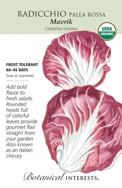 Bring color and fresh flavor to your kitchen! Radicchio heads up and develops color best in cool weather. Excellent for overwintering in USDA zone 4 and warmer, and heads regrow if cut correctly (details inside packet). The distinctive and mildly bitter flavor sweetens with frost and can be mellowed by grilling or a flash in the pan.