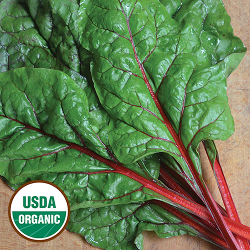 A member of the beet family grown for its edible leaves and stalks. Deep crimson stalks and leaf veins contrast beautifully with dark green heavily crumpled leaves. Ornamental and delicious, excellent in soups and stews. 50-60 days. ±1,800 seeds/oz.