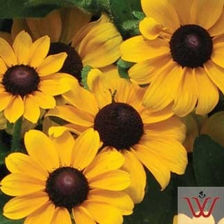 2.5″ rounded golden flowers on a compact (14″ tall) plant. Blooms mid summer to fall. Very heat and drought tolerant. Butterfly favorite.