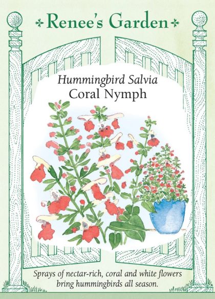 This premium variety is more compact and earlier blooming than other salvias, with clouds of nectar-rich, orchid-like blossoms in an enchanting shade of salmon-coral with tiny white stamens. Hummingbirds seek out and flock to Coral Nymph plants literally from dawn to dusk, and sprays of these charming flowers are lovely in mixed bouquets. Coral Nymph grows readily in a wide range of conditions and blooms continuously throughout summer. Ideal for big containers or as easy-care, free-flowering border plants.