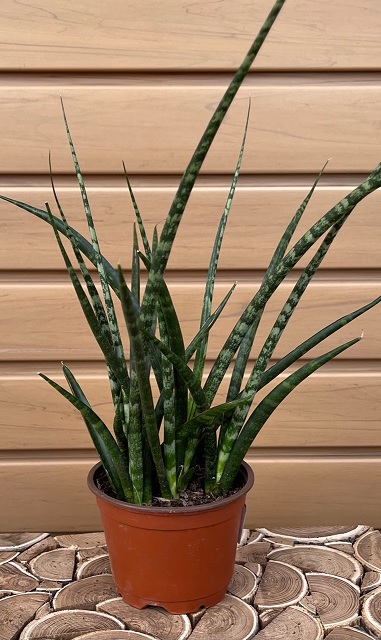 Only water Sansevieria Fernwood when soil is dry. When watering, be care not to water leaves directly. Prefers bright, indirect light, but can survive in low light.