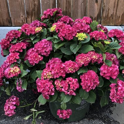 Seaside Serenade® Cape Hatteras Hydrangea. Stunning, long-lasting ruby red color on captivating mophead blooms that is not influenced by soil pH. A compact variety with bright green, thick foliage, perfect for massing in the landscape or for use in containers. Produces masses of superb cut flowers with notably sturdy stems. A new exclusive introduction for 2018. Deciduous.