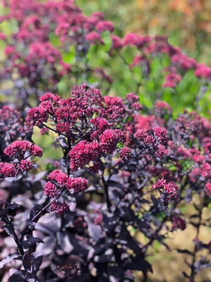 Dense clusters of blood-red flowers contrast dramatically against deep-purple, almost black foliage, making a big statement in the garden. A shorter, sturdier form than other varieties. Ideal for a waterwise border or rock garden. Succulent foliage will die back to the ground in cold winter regions, but will re-emerge in early spring.