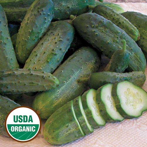 (aka Snow’s Pickling) Selected from Chicago Pickling by J. C. Snow of the famous Snow Pickle Farm in Rockford, IL. Listed circa 1905 by Vaughan Seed House of Chicago. Once a very popular small pickle, can still be used to make fancy pickles today. Dark green, short and slender (5″ long by 1½” wide), thin flesh. 50-60 days. ±1,000 seeds/oz.