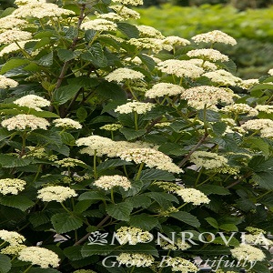 A densely branched, upright, deciduous shrub with lustrous, dark green, ruffled foliage that turns bright yellow to red in fall. Creamy white, flat-topped umbels give way to large clusters of showy blue-black berries that will delight birds. A hardy and reliable hedge, screen or border background, ideal for urban landscapes or native gardens.
