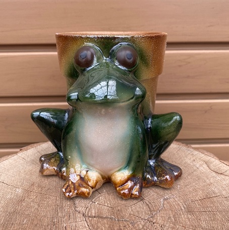 This stoneware frog planter is 5.25 inches wide.