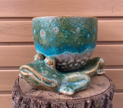 STONEWARE PLANTER WITH FROG BASE