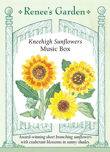 These award winning short sunflowers are real powerhouses with an abundance of perky 4 to 5 inch flower faces to fill your beds and borders. The bushy plants bloom freely in lively sunny shades from rich clear yellow to deep gold and cream with pretty bicolors of bronze over gold, all with crisp petals and chocolate center disks. Music Box will delight you with long-blooming exuberant flowers in the garden or to use in bouquets.