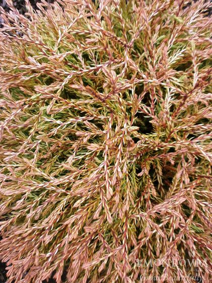 This compact shrub has a dense, mounded form and attractive yellow spring foliage that matures to a golden orange color with hints of lime green. Foliage retains its color throughout winter. Adds fine, delicate texture to the landscape and provides interest to borders or groupings. Evergreen.