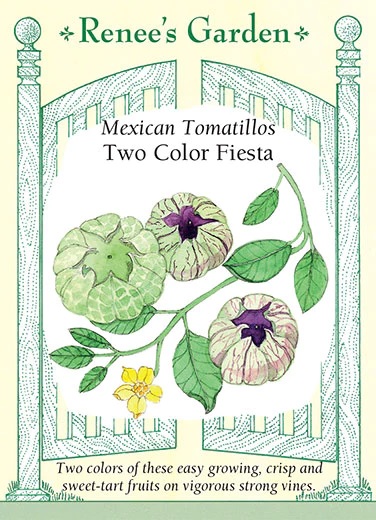 EXCLUSIVE – Easy to grow, tomatillos look like large green cherry tomatoes, each wrapped in a thin papery husk like a candy. Our heirloom purple-skinned variety is prolific with small, sweet/tangy fruits that are great grilled or in purple salsa. Green-skinned Toma Verde is imported from Mexico, with crispy fruits on strong vines. Enjoy both sweet-tart flavors for summer salsas, rich-tasting stews and savory sauces.