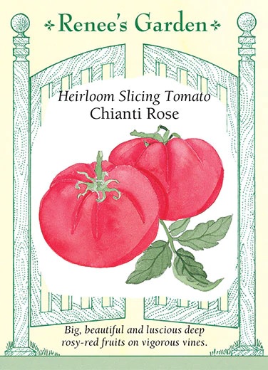 This big, beautiful beefsteak tomato with fabulous flavor is a cross between the famous pink Brandywine and a treasured family variety from Italy. Juicy, flavorful and heavy in the hand, Chianti Rose tomatoes are thin skinned with smooth, creamy flesh and glowing rosy-red color. The strong vigorous vines with potato leaf foliage tolerate cooler summers and are more crack-resistant and uniform than other large fruited heirlooms. Huge harvests of these scrumptious tomatoes are a highlight of our summers!