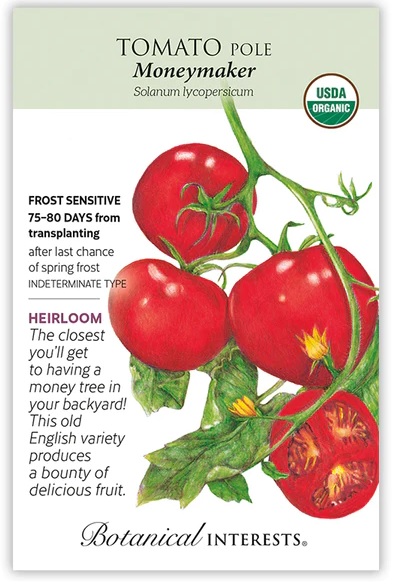 A very popular variety for commercial growers in the 1950s and 1960s, 'Moneymaker' earned its name because of its uniformity and reliably heavy yields. The medium-sized fruits are sweet with a meaty texture, making them versatile for use in fresh or cooked dishes. A good choice for greenhouses as well as outdoors. A favorite of southern gardeners and those in climates with hot, humid summers.