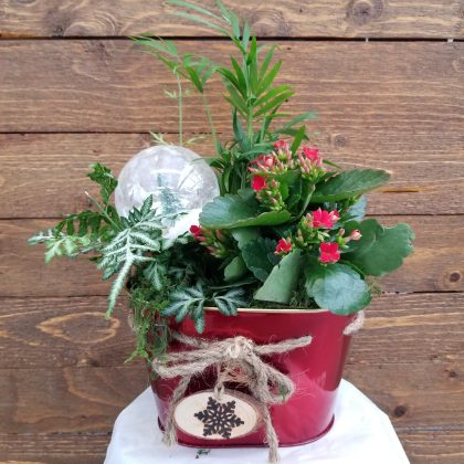 Place in bright indirect light. Water weekly or when the top 1″ of the soil is dry. A great indoor holiday decor or a hostess gift.