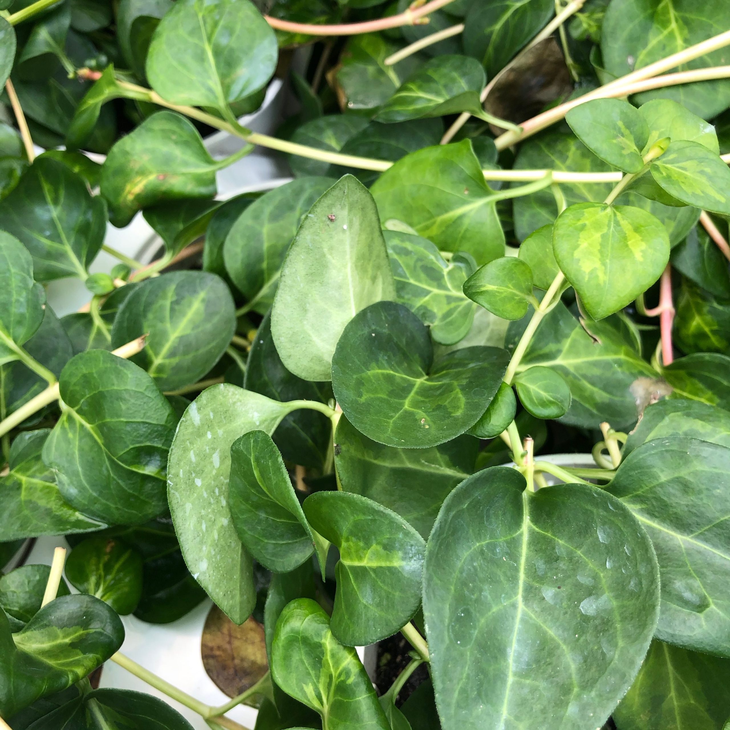 This is a trailing vine plant with shiny, varigated green and yellow leaves grown mainly for its foliage. Compliments other plants well as an accent and great for planting in window boxes, hanging baskets, patio pots, and beds. Resistant to deer.