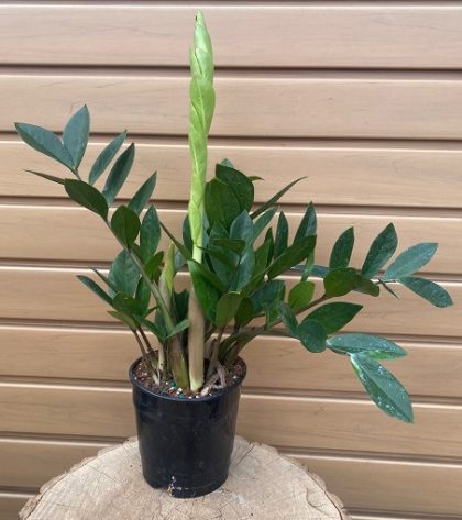 The ZZ plant does well in bright, indirect light. Needs a loose, well-draining soil and a pot with drainage to avoid rot. Only water once soil has completely dried.
