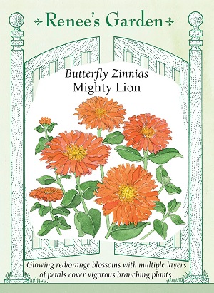 For wonderful bright color in the garden, Mighty Lion offers intense orange-red, fully double, 4 to 5 inch blossoms with multiple layers of petals that remind us of a lion's mane. These easy to grow, sun loving plants are literally covered with big glowing blossoms that attract butterflies and other pollinators and make a lively statement in the garden. The sturdy branching plants are exceptionally long blooming and their vibrant flowers make striking indoor bouquets.